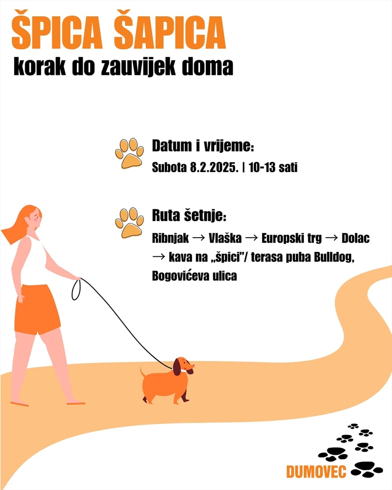 U subotu, 8. veljače, od 10 do 13 sati, naše će se njuškice ponovo naći u ulozi modela! Pista će im biti zagrebačka špica.Blistat će kao da se nalaze na crvenom tepihu, a mi se nadamo da će neke naše njuške tada ušetati i u vaše srce.U sklopu akcije Špica šapica naši volonteri i zaposlenici s četiri će naša psa krenuti u šetnju s Ribnjaka. Nastavit će preko Vlaške, Europskog trga i Dolca do Bogovićeve ulice. Tamo će predahnuti uz kavu na terasi puba Bulldog.Ako razmišljate o udomljenju ljubimca ili vas zanima volontiranje u Skloništu, pridružite nam se na špici!Nadamo se da će akcija Špica šapica postati tradicionalna! Želja nam je da se održava svake druge subote u mjesecu.