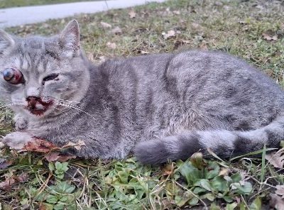 Napomena: mačka je ranjena nije u stanju hodati, stražnje nove vuče.. pretpostavljamo da ju je auto lupio