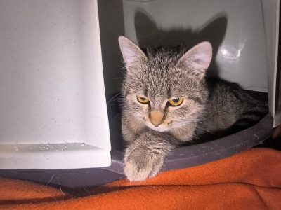 Napomena: Siva tigrasta maca nađena u transporteru pred ogradom Noine arkebb