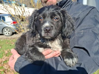Boja i dlaka: crna sa bijelim mrljama, duljina-poluduga, izgled-valovita