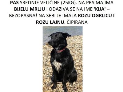 Napomena: 13.02.2021. oko 19 sati uCentru, Bauerova ulica, Trg Žrtava Fašizma, pobjegla je crna kujica srednje veličine (25kg). Odaziva se na ime Kija, jako je umiljata. Na sebi ima rozu ogrlicu…