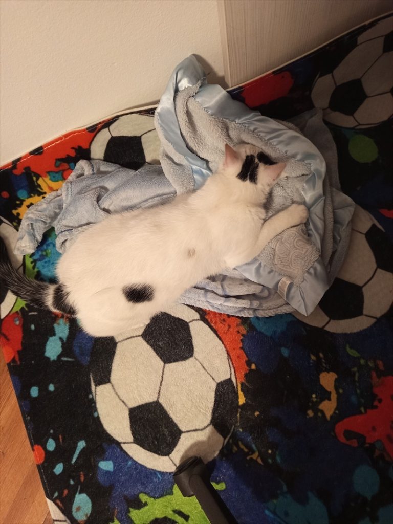 Došla je k nama početkom 9 mj tj muž ju je našao i udomili smo ju. Procjena je tada bila veterinara 2-2.5 mj. Cijepljena je jednom u Lučkom. Bijela sa crnim detaljima. 2 crne mrlje na glavi, malo crnog po šapicama, crni rep. Molim Vas, ako se netko javi, dolazimo odmah po njega. Odaziva se na ime Frka .