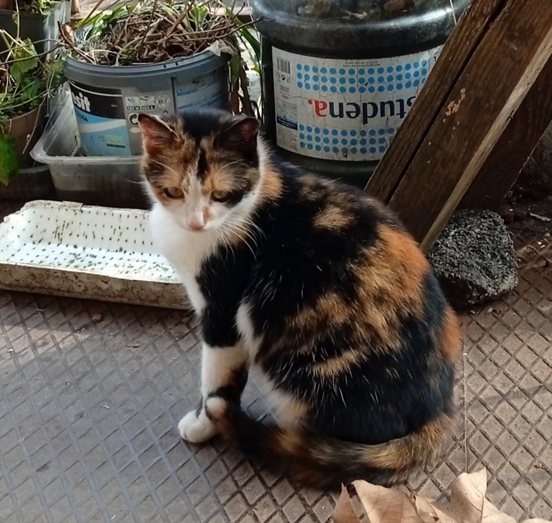 Maca je trobojna: žuto-crno-bijela. Vanjska ulična maca, dolazi odnedavno na hranilište.Treba je hitno sterilizirati, parila se nedavno, Dugo je nisam mogla pripitomiti inače bi je donijela i ranije. I dalje je plašljiva, ali mi se sada ponekad da pomaziti.