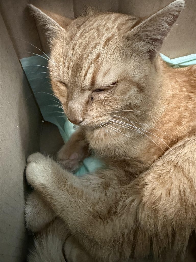 Pronašla sam mačku koju je udario auto kraj cesta. Bila je zbunjena, smušena, bez vidljivih otvorenih rana, ali je vrlo vjerojatno zadobila potres mozga. Dovela sam ju doma, preživila je noć. Ne jede, ne pije, samo spava i još uvijek je van sebe. Maca je jako mršava.