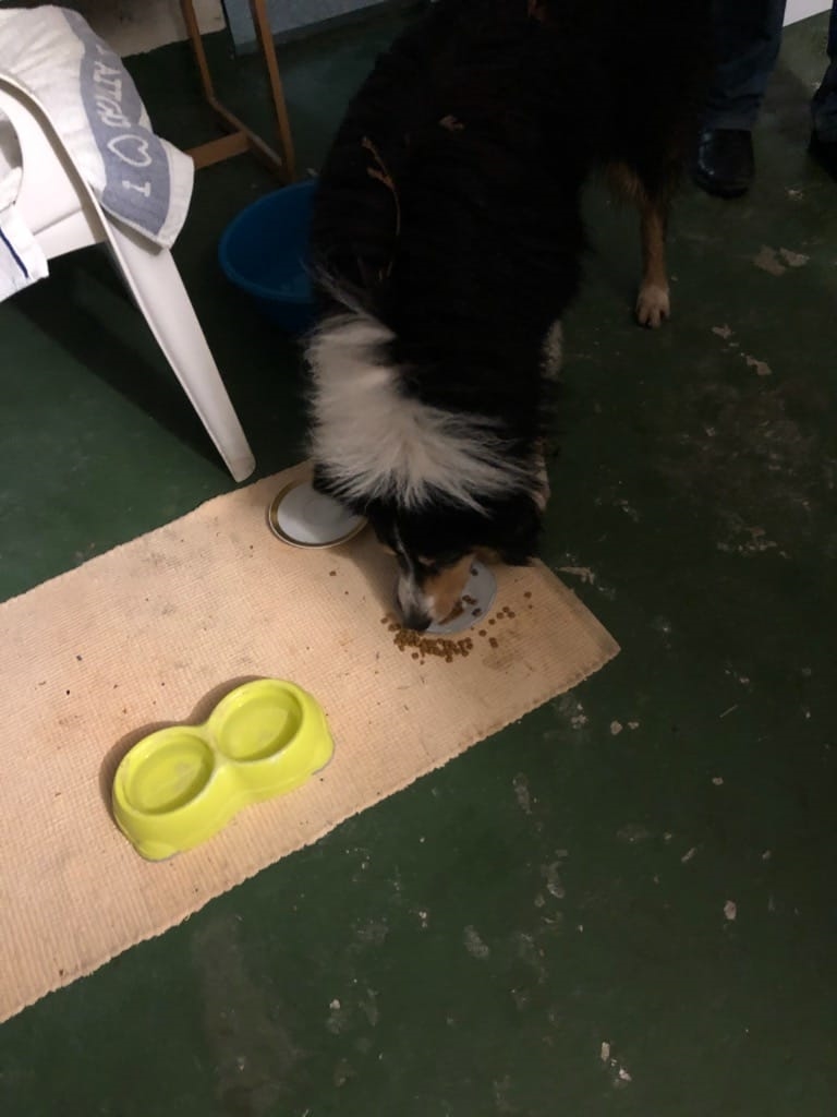 Dolutao škotski ovčar. Ima dvije ogrlice,